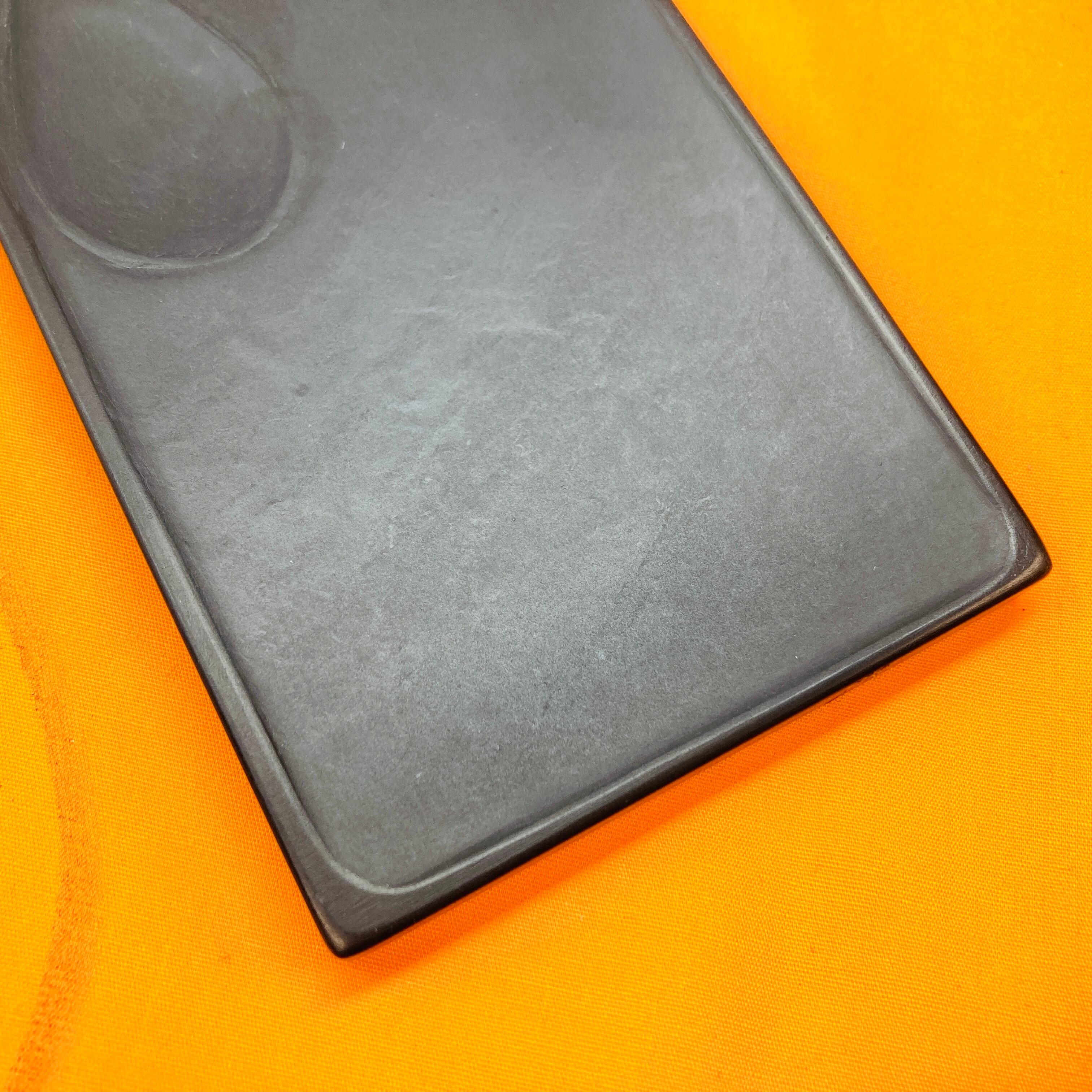 The sculpted eggplant-shaped suzuri is a unique item with elegant and lovely carvings, perfect for calligraphy and copying texts. The Amehata suzuri is a highly regarded highest-grade product among literati and Calligraphers, and it was crafted by the "Modern Master Craftsman" Houken Amemiya, showcasing the craftsman's skills in every detail. Why not acquire a lifetime suzuri and enjoy daily creativity?