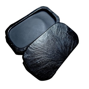 蓋付硯は、蓋の裏面への漆加工により蓋がフィットするよう丁寧に仕上げられています。この硯の存在感と使い心地は、その重みと滑らかな質感から明らかで、自然のままの天然石を用いたデザインはどんな環境にも調和し、伝統的な和の美を演出します。職人が一つ一つ手作業で仕上げることで、硯はそれぞれに独特のキャラクターを持ち、選び抜かれた素材と職人技の結晶です。ただの書道具にとどまらず、使う者の創造力を高める芸術品として、あなたの書斎に格別の価値をもたらすでしょう。